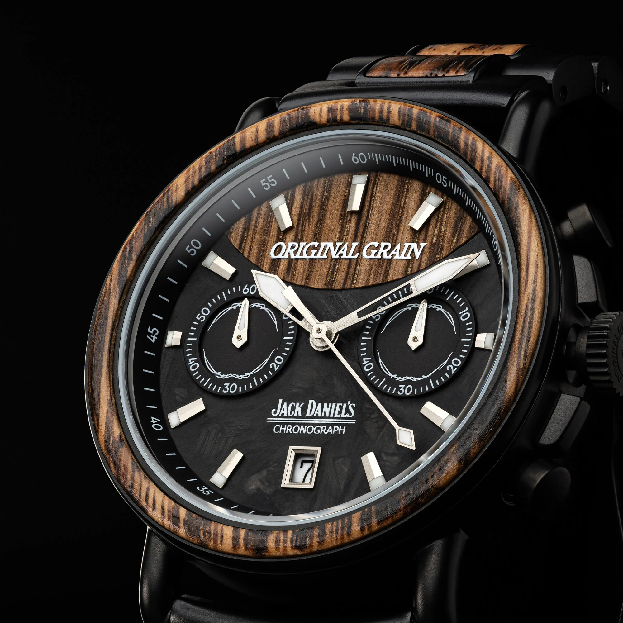 An exclusive Chronograph design in official partnership with Jack Daniel’s, we’ve crafted a collection of watches using authentic Jack Daniel’s whiskey barrels from Lynchburg, Tennessee.