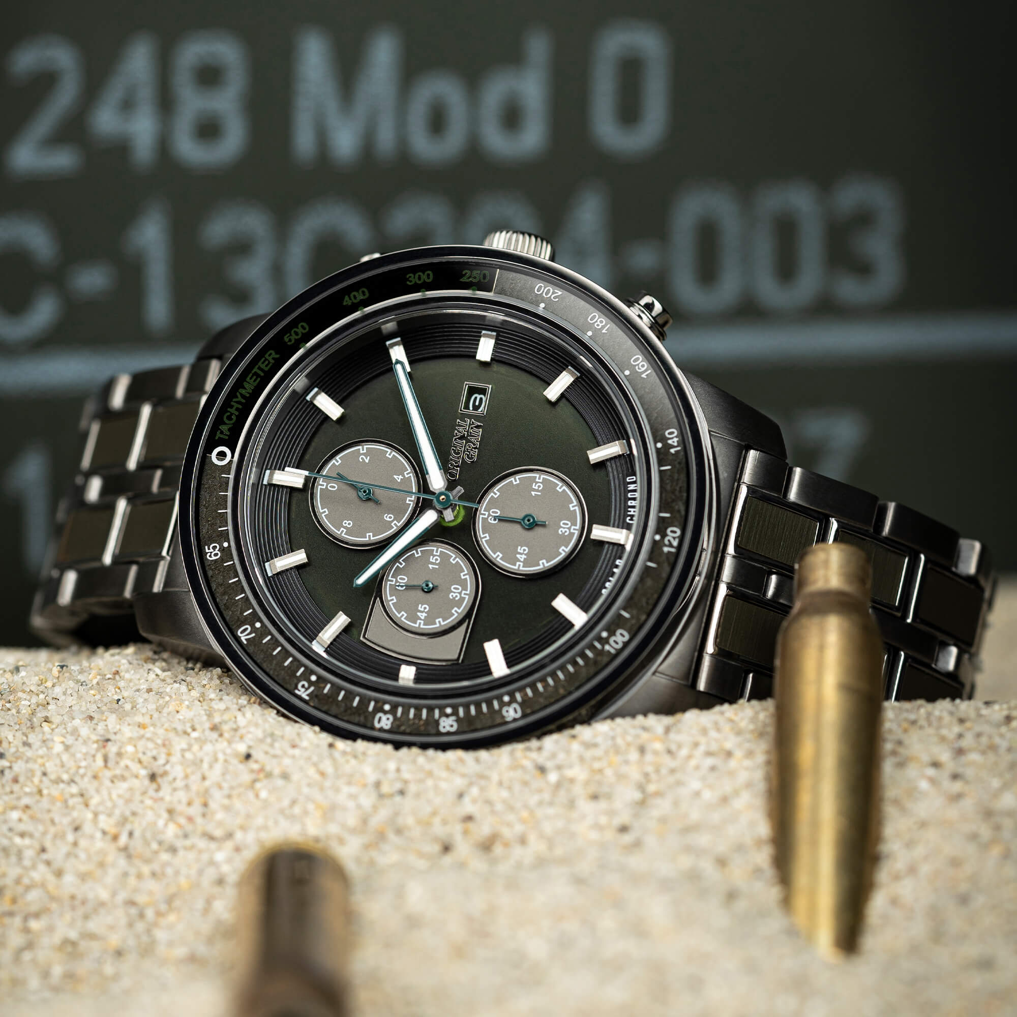 Military Green Barrel Solar Chrono 45mm - made with military ammo crates