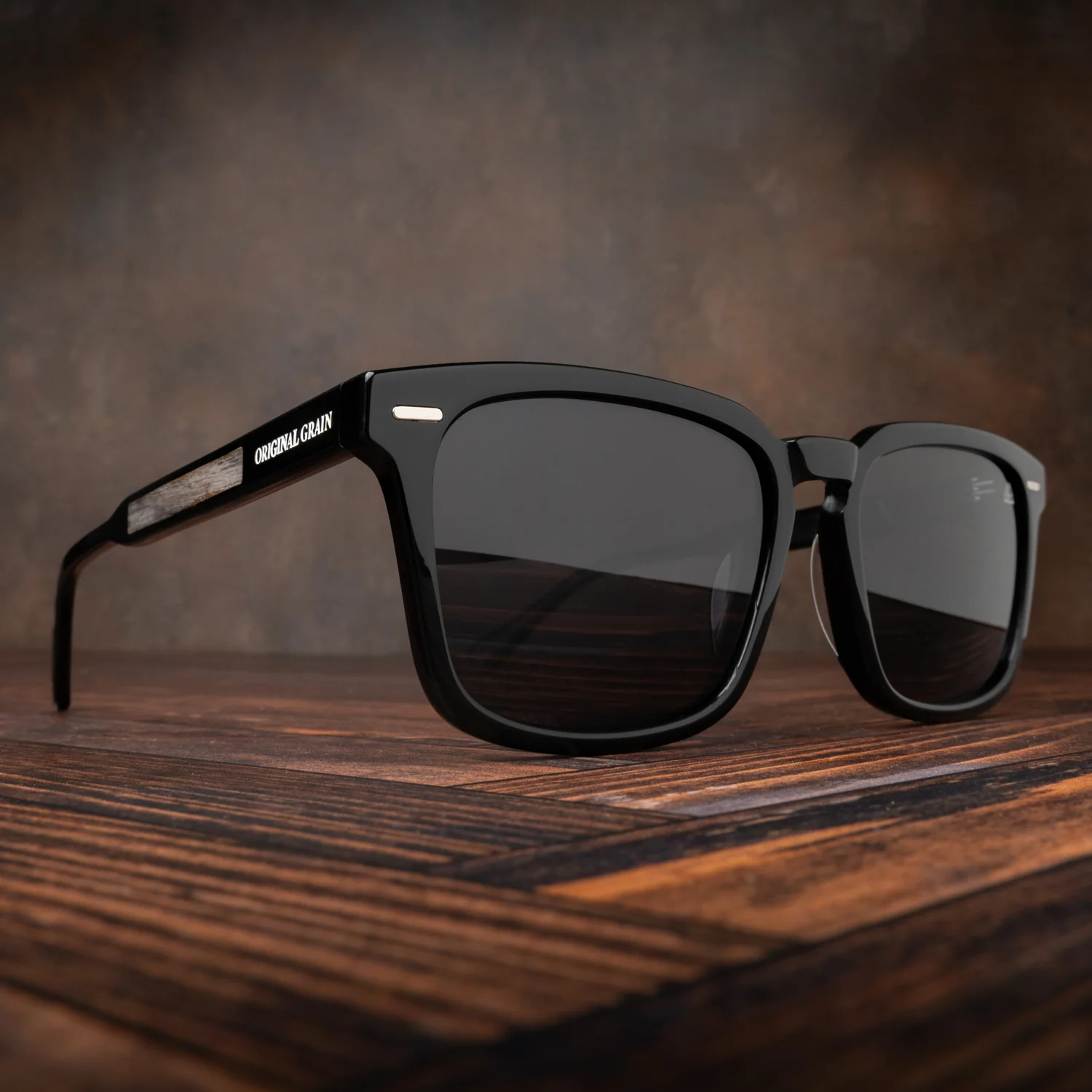 Sunset Walnut Shiny Black Sunglasses—